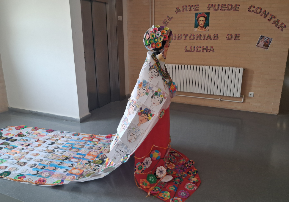 Hemos conocido varias de sus obras y hemos diseñado la original propuesta que os mostramos a continuación. El alumnado, a partir de su creatividad, ha realizado su propio autorretrato imitando los que pinta Frida y todo lo necesario para decorar este maniquí.